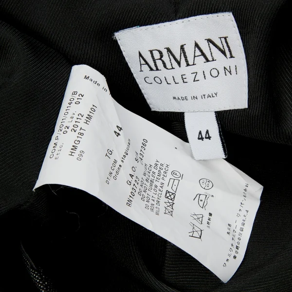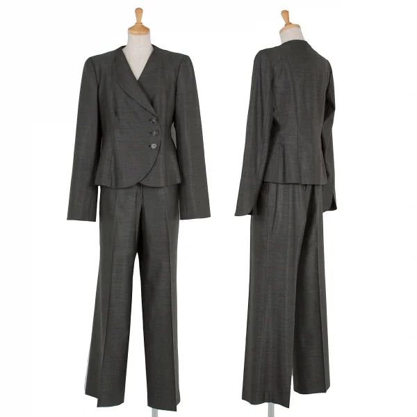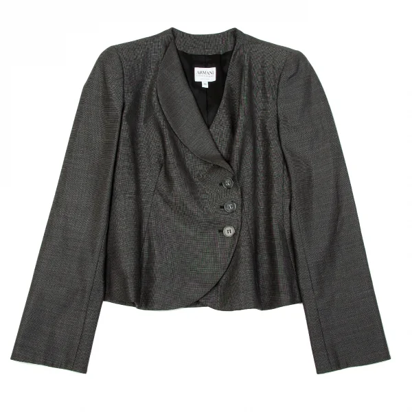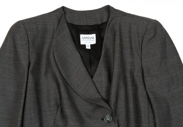 アルマーニ コレッツィオーニARMANI COLLEZIONI アシメカラーピンドットウールシルクセットアップスーツ 黒グレー44/42