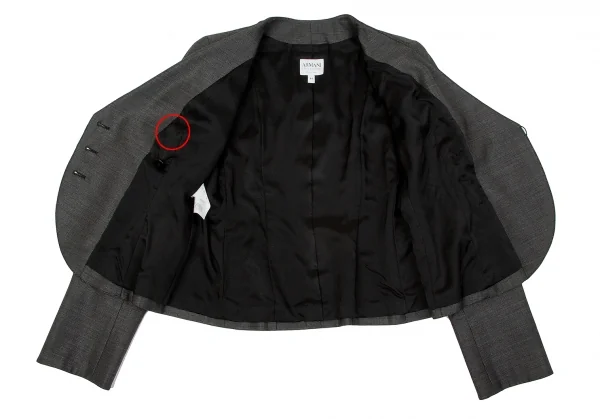 ジャケット裏地に糸つれがあります(写真参照)。その他に目立ったシミ、汚れ、ほつれ等なくいい状態です。クリーニング済み