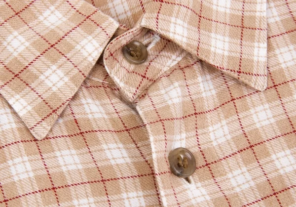 【SALE】パパスPapas コットンチェックネルシャツ ベージュS