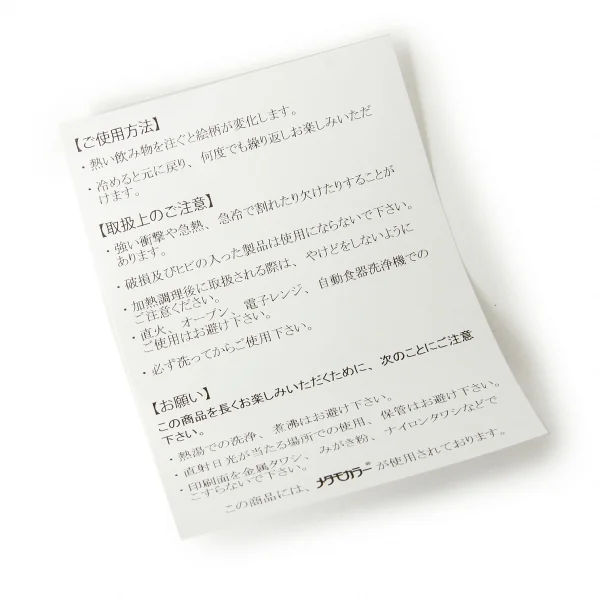 新品のお品になります。こちらの商品は熱い飲み物を注ぐと絵柄が変化いたします。