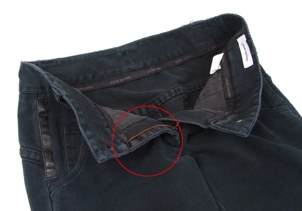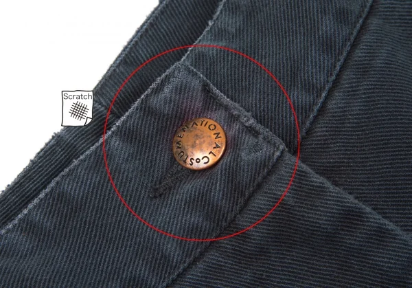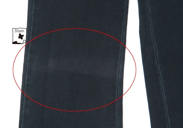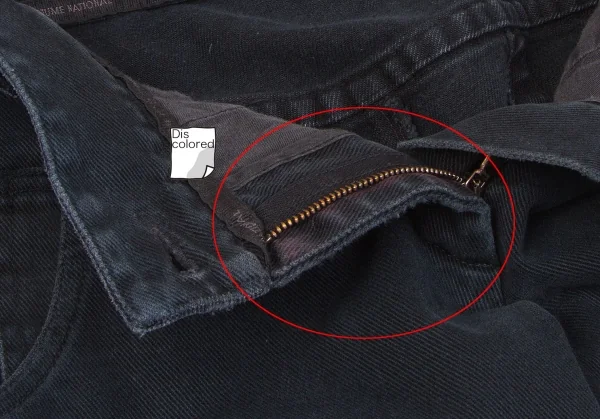 ウエスト、ジップ裏に変色あり。右足に変色あり。(写真参照)その他に目立ったシミ、汚れ、ほつれ等なくいい状態です。クリーニング済み