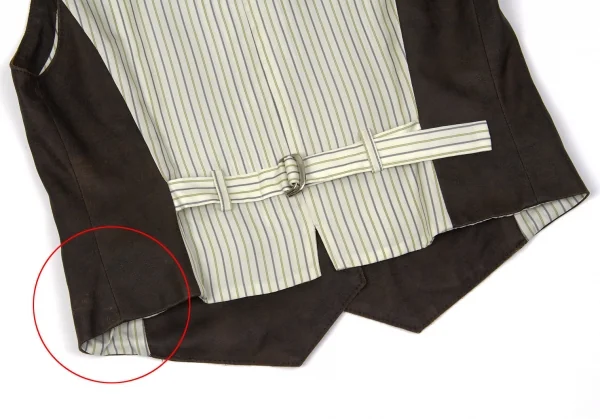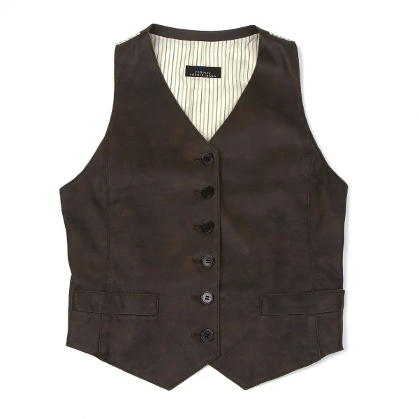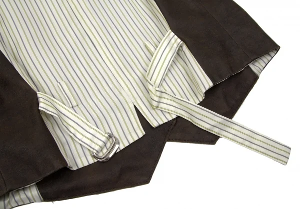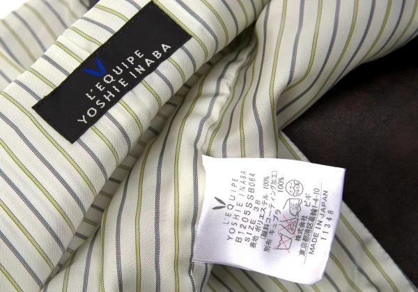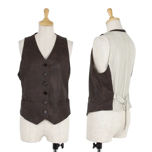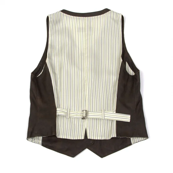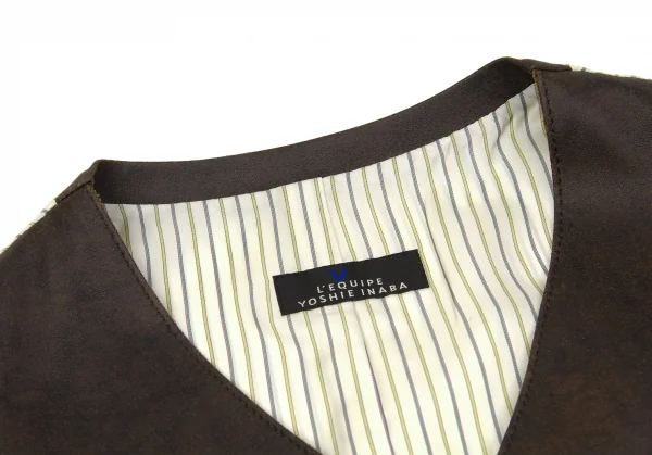 【SALE】レキップ ヨシエイナバL'EQUIPE yoshie inaba ストライプ切替顔料コーティングベスト 茶M位
