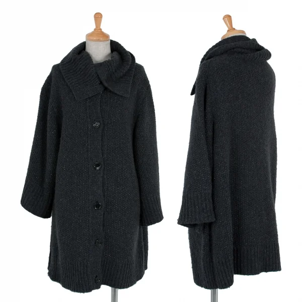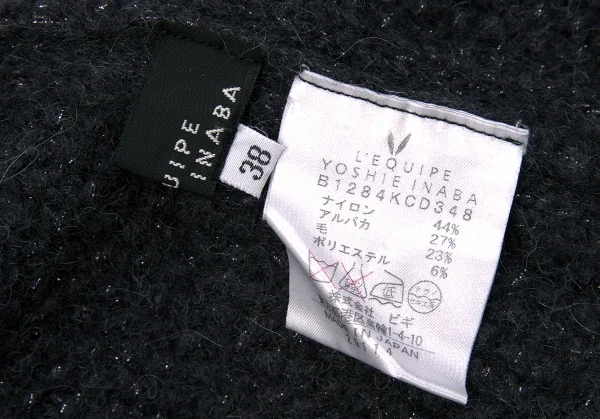 【SALE】レキップ ヨシエイナバL'EQUIPE yoshie inaba ハイネックラメニットカーディガン チャコール38
