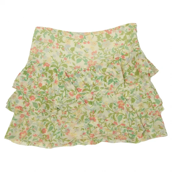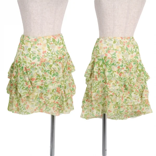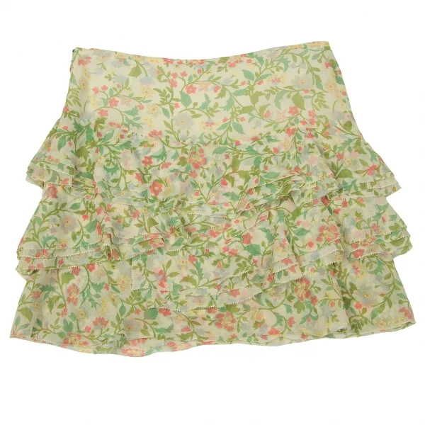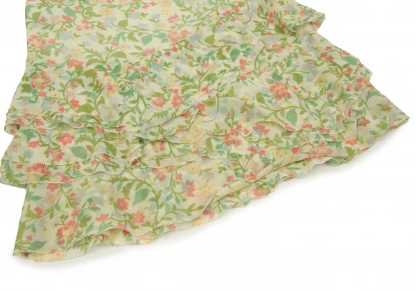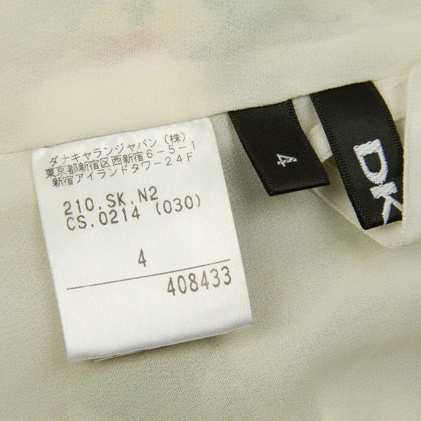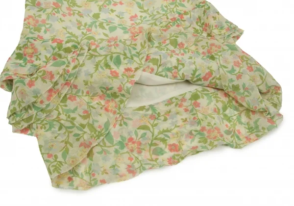 【SALE】ダナキャランDKNY ボタニカル柄プリントシフォン切替スカート オフ緑4