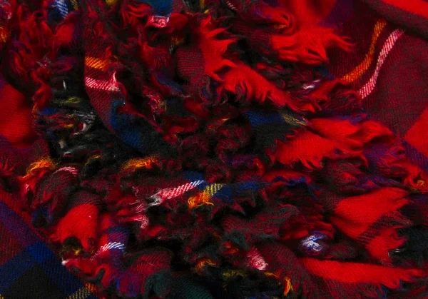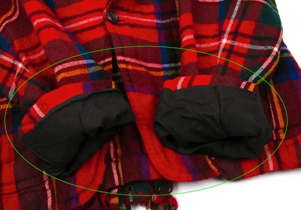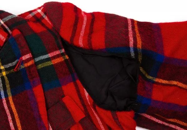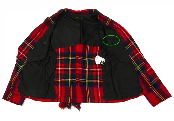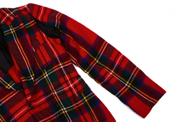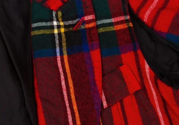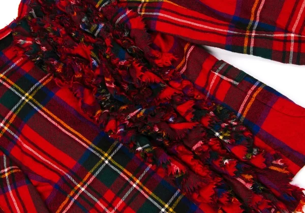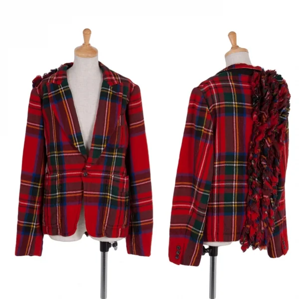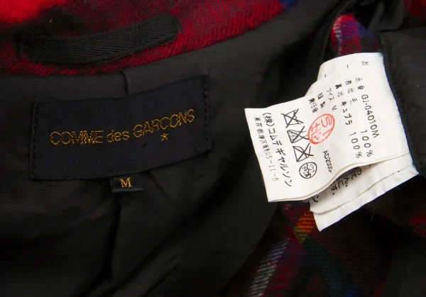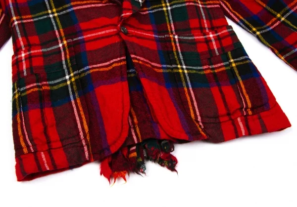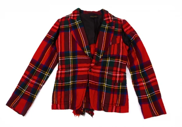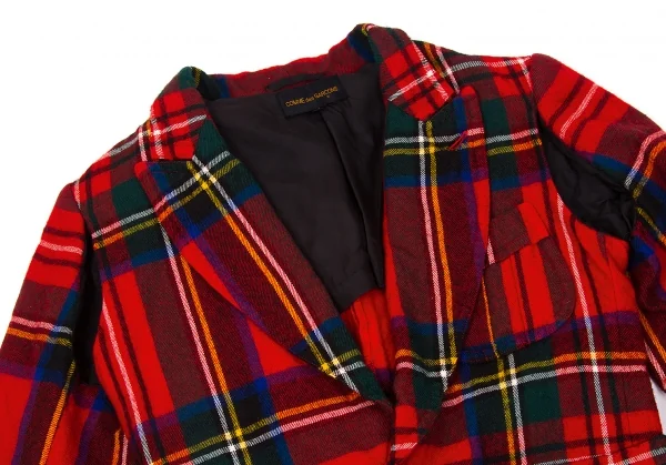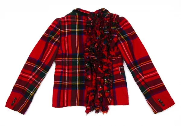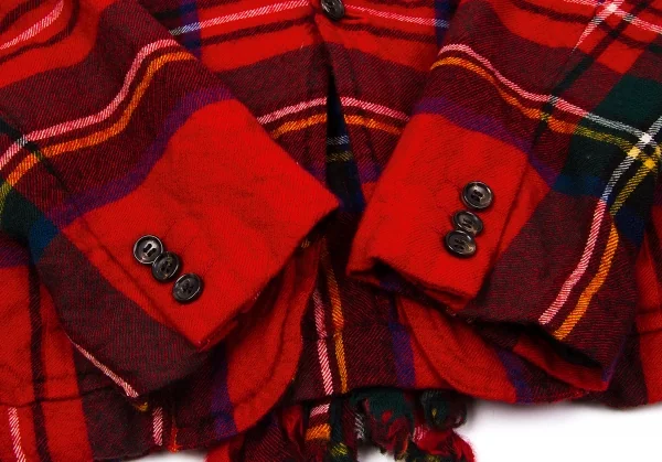 コムデギャルソンCOMME des GARCONS ウール縮絨バックフリルタータンチェックジャケット 赤緑黄他M