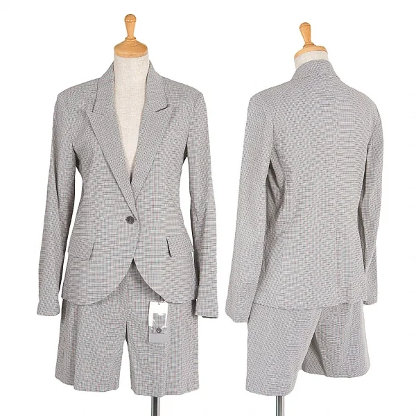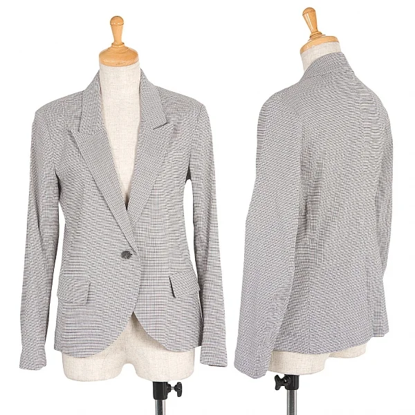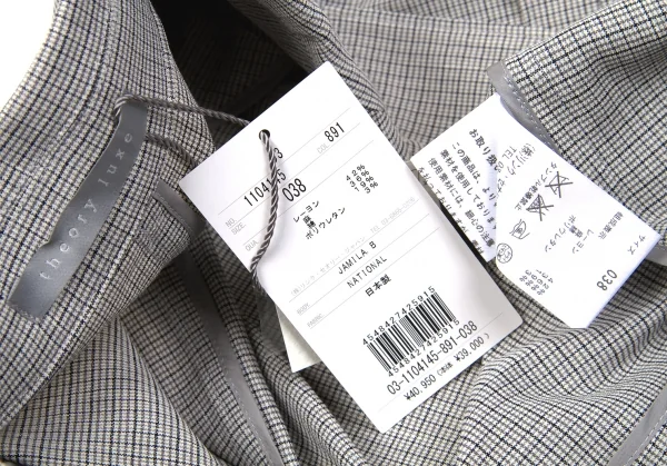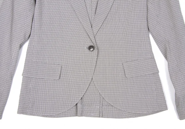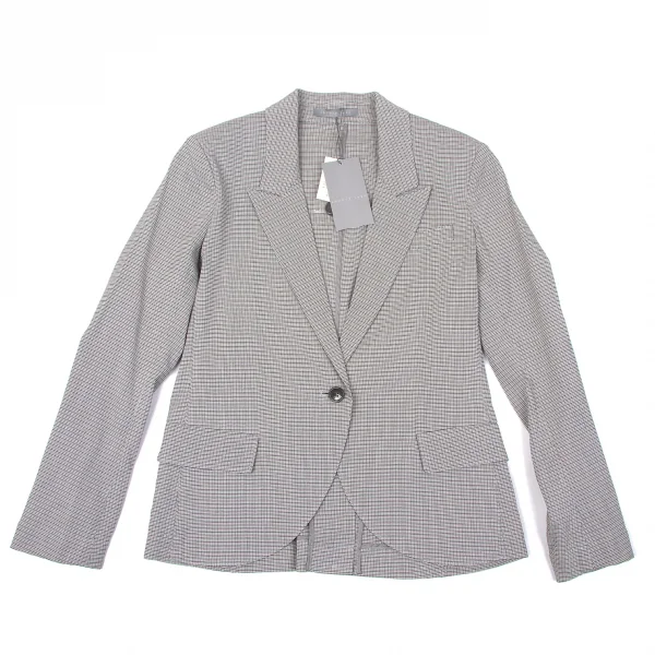 新品!セオリー リュクスtheory luxe 混紡レーヨンチェックピークドラペル1Bジャケット グレー濃淡オフ38