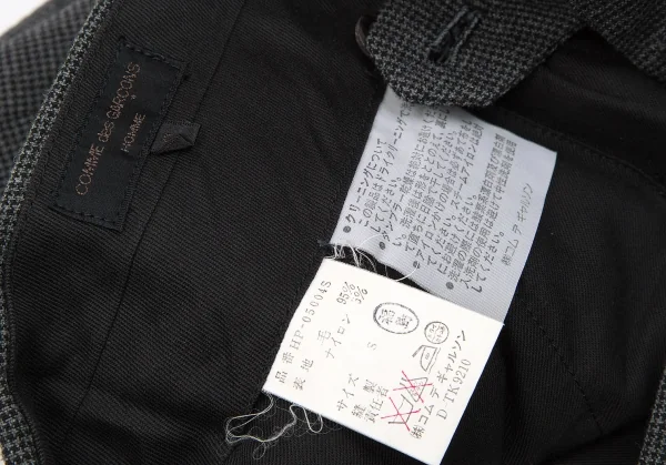 コムデギャルソン オムCOMME des GARCONS HOMME ウール千鳥格子2タックパンツ 黒グレーS