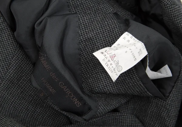 コムデギャルソン オムCOMME des GARCONS HOMME ウール混千鳥格子セットアップスーツ 黒グレーS