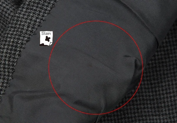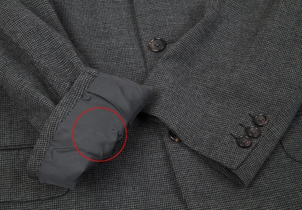 ジャケット 前身頃に小穴、右袖裏に汚れあり(写真参照)。その他に目立ったシミ、汚れ、ほつれ等なくいい状態です。クリーニング済み