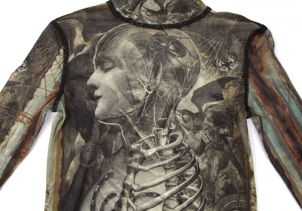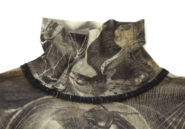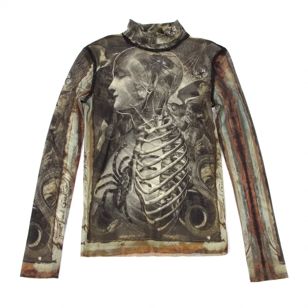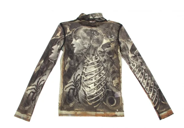 ジャンポールゴルチエ オムJean Paul GAULTIER HOMME グロテスクプリントパワーネットハイネックカットソー 黒ベージュレンガ他48
