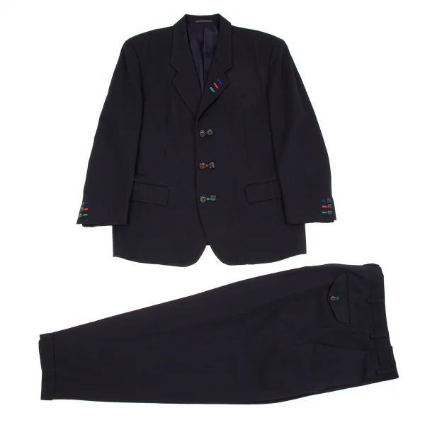 コムデギャルソンオムプリュスCOMME des GARCONS HOMME PLUS マルチカラーボタンホールウールギャバパンツ 紺マルチS