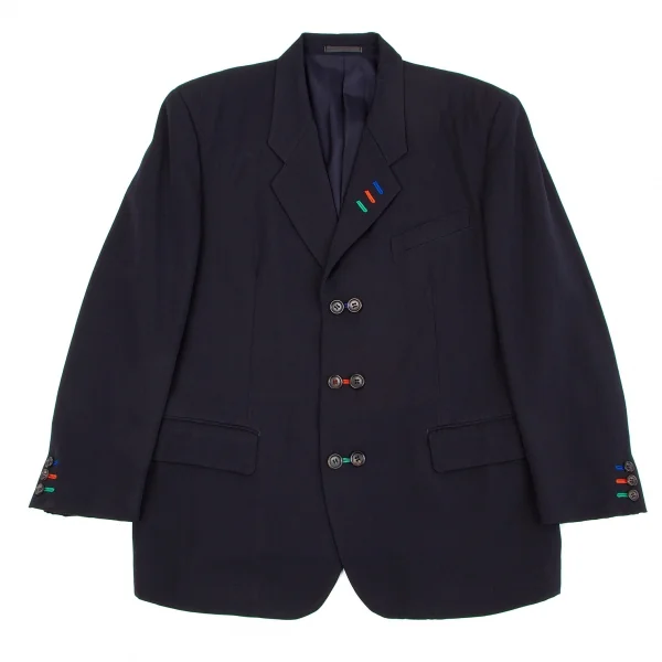コムデギャルソンオムプリュスCOMME des GARCONS HOMME PLUS マルチカラーボタンホールウールギャバセットアップスーツ 紺マルチS