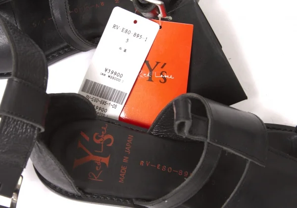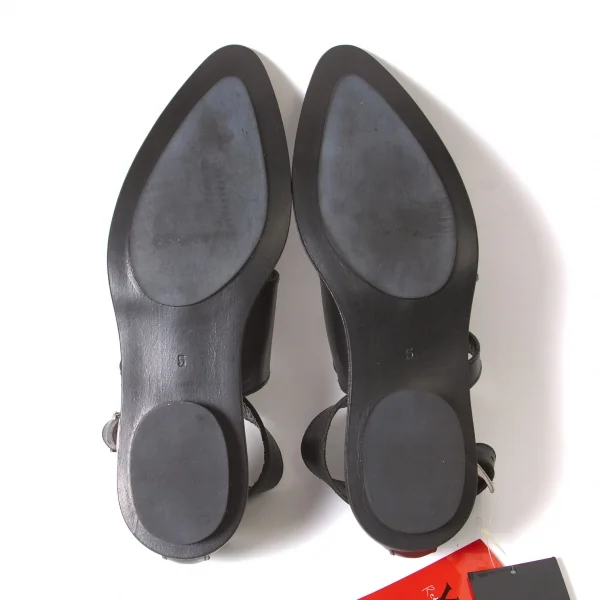新品!ワイズレッドレーベルY's red Label ポインテッドトゥレザーサンダル 黒5(24.5位)