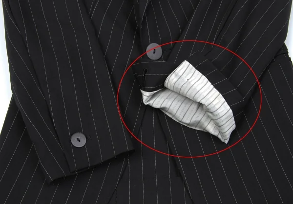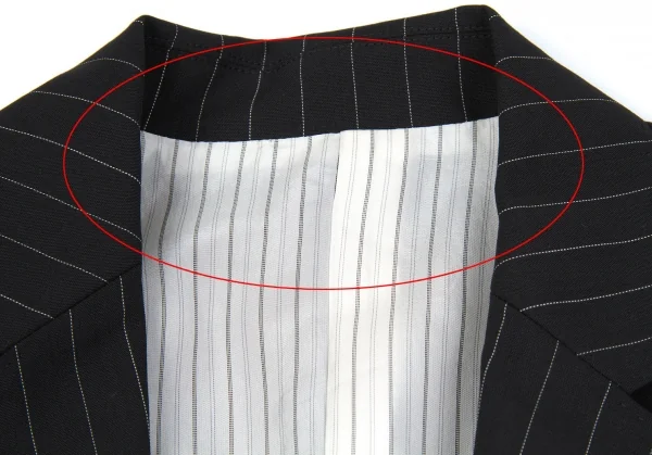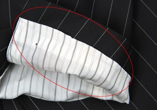 襟元、袖裏、裏地脇下に薄シミあり(写真参照)。その他に目立ったシミ、汚れ、ほつれ等なくいい状態です。クリーニング済み