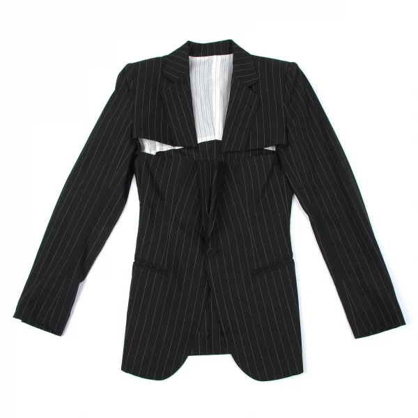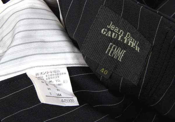 ジャンポールゴルチエファムJean Paul GAULTIER FEMME カットデザインストライプ1Bジャケット 黒40