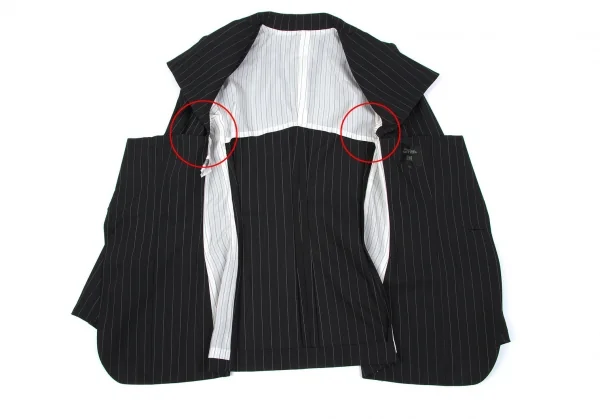 ジャケット 襟元、袖裏、脇下に薄シミあり(写真参照)。その他に目立ったシミ、汚れ、ほつれ等なくいい状態です。クリーニング済み