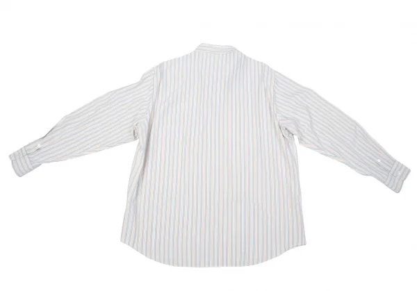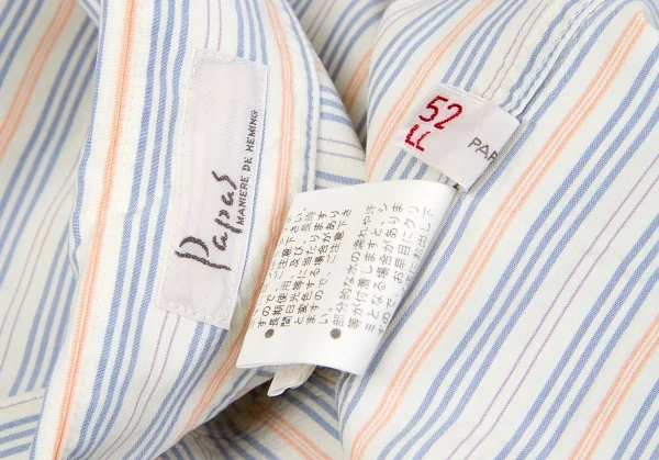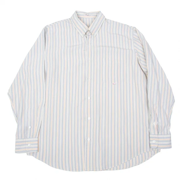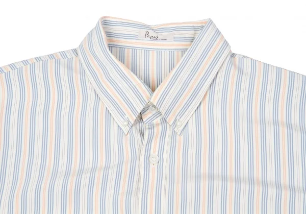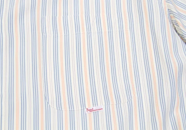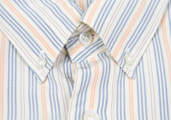 パパスPapas シルクマルチストライプ長袖ボタンダウンシャツ ベージュ青オレンジLL