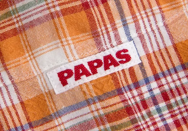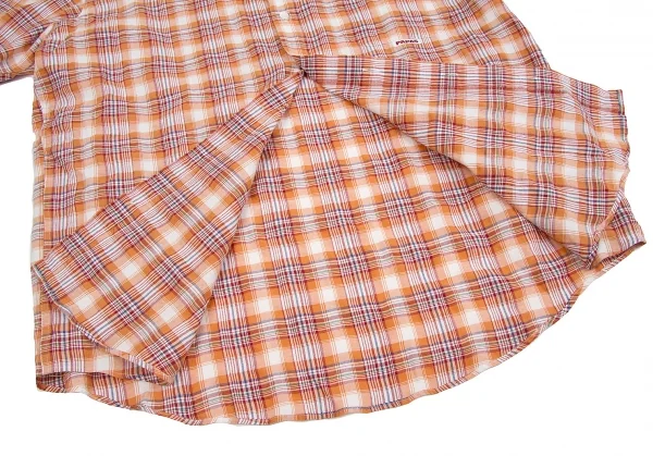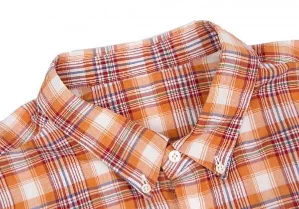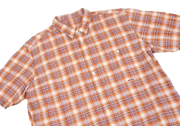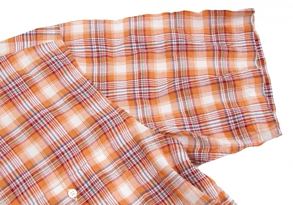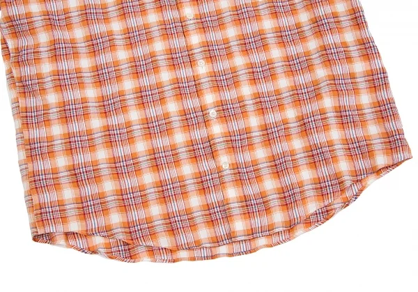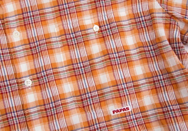 パパスPapas コットンポリマドラスチェック半袖シャツ オレンジ赤紺他LL