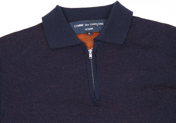 【SALE】コムデギャルソン オムCOMME des GARCONS HOMME ウールアクリルジップアップニットポロセーター 紺オレンジS