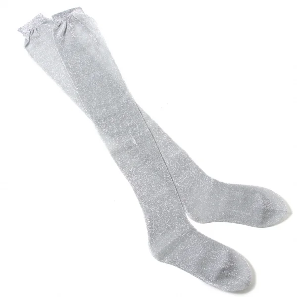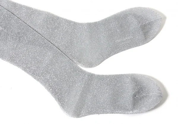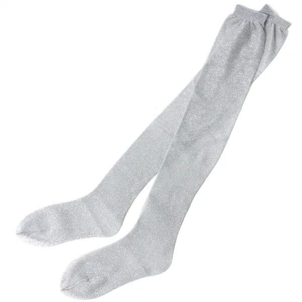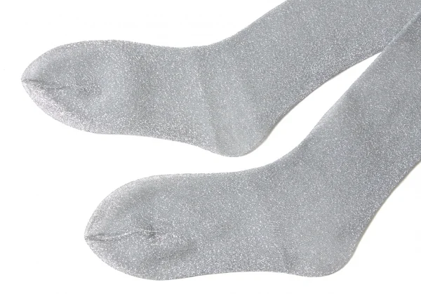 イッセイミヤケISSEY MIYAKE グリッターファブリックハイソックス シルバーM位