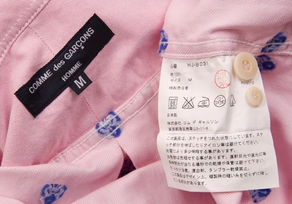 【SALE】コムデギャルソン オムCOMME des GARCONS HOMME 蝶刺繍コットン長袖シャツ ピンクM