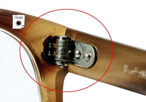 耳掛け部分にキズがあります(画像参照)。その他フレームは目立ったキズ無く綺麗な状態です。 お客様一人一人の視力、骨格、鼻幅、耳の高さが違います。このような理由からオンラインショップでの度付きレンズ販売はしておりません。 お手数をおかけしますが、度入りレンズはお近くの眼鏡店等でお買い求めください。 他眼鏡店にてレンズの入れ替え、調整等に生じた不具合、破損については一切の責任を負いかねますので予めご了承下さい。