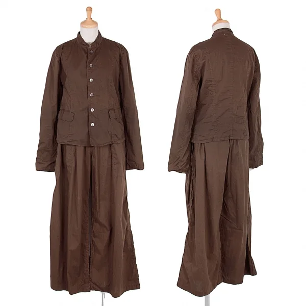 ズッカ zucca ゴムウエスト製品染めコットンワイドパンツ 茶M