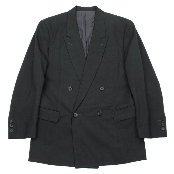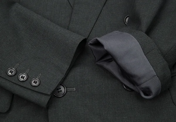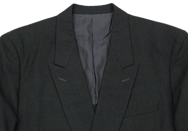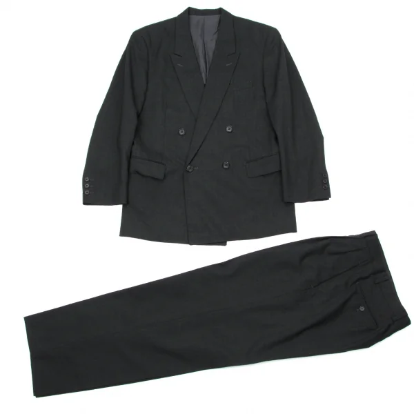 【SALE】イッセイミヤケ メンISSEY MIYAKE MEN ウールピークドラペルダブルブレストセットアップスーツ S チャコールS