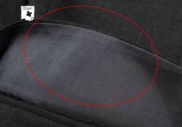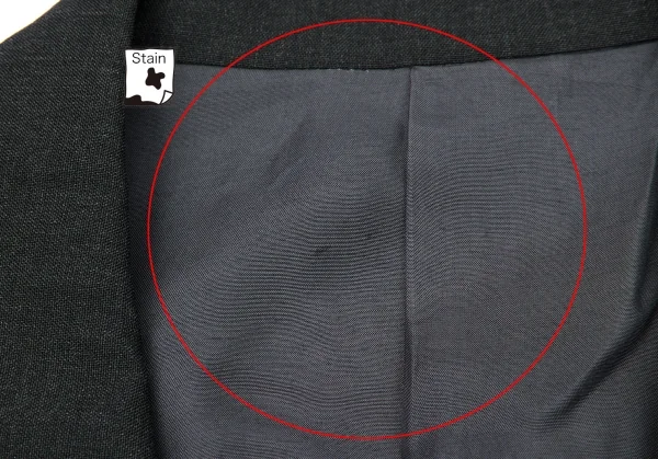 J:首裏付近、ポケットフラップ部分にシミがあります。P:身頃タック部分に穴開きがあります。(画像参照)その他目立ったシミ、汚れ、ほつれ等なくいい状態です。クリーニング済み