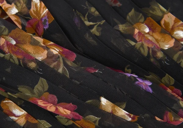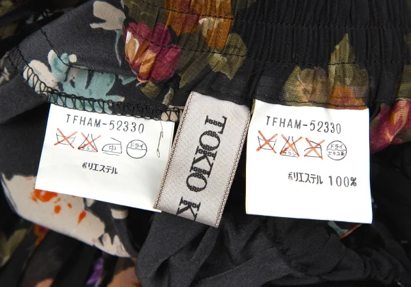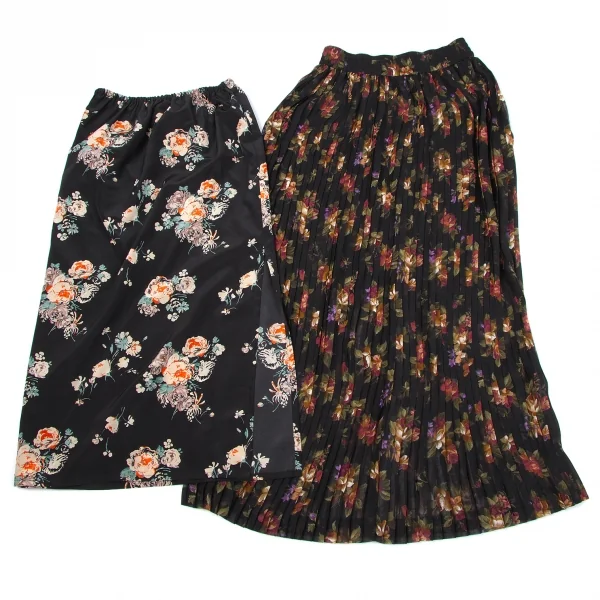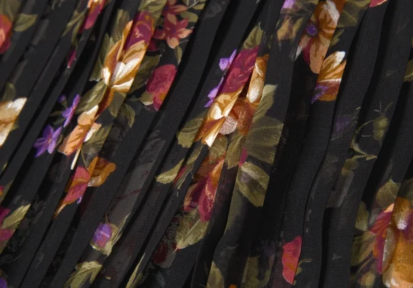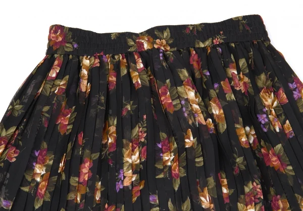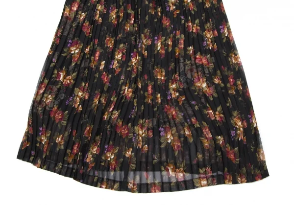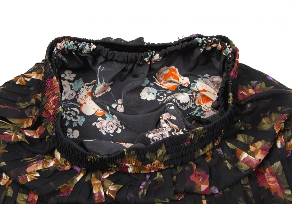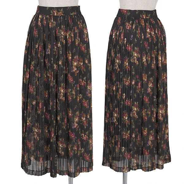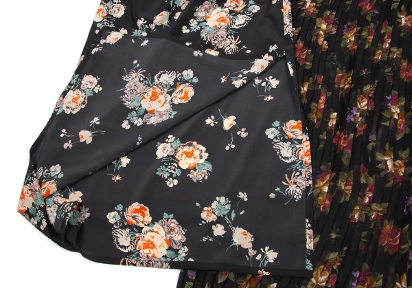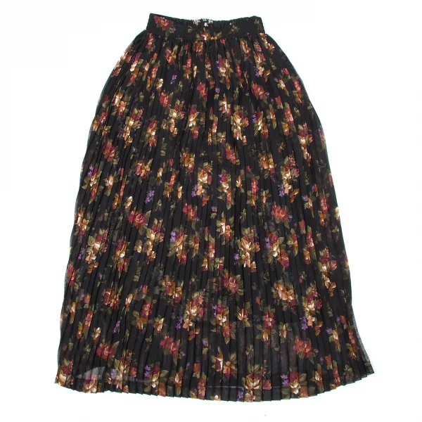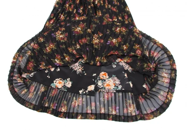 トキオクマガイTOKIOKUMAGAI フラワープリントプリーツスカート 黒エンジ紫他M