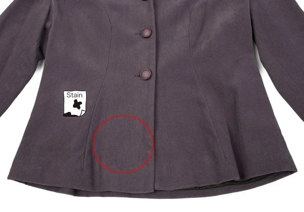 前身頃に汚れ、後ろ裾にスレがあります(写真参照)。クリーニング済み