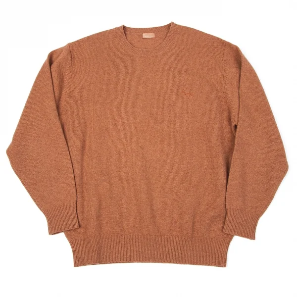 【SALE】パパスPapas ワンポイントロゴ刺繍ウールニット 杢レンガM