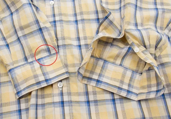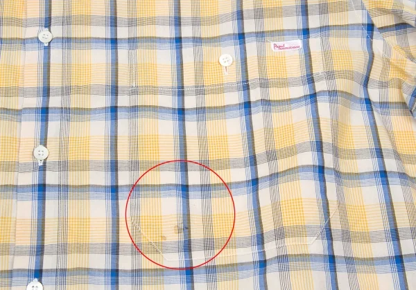 前身頃・右袖にシミがあります(画像参照)。クリーニング済み