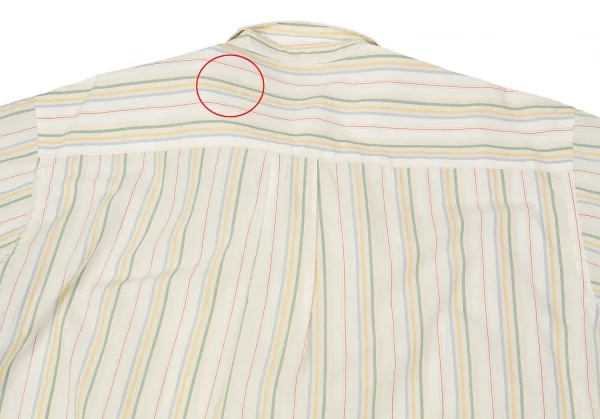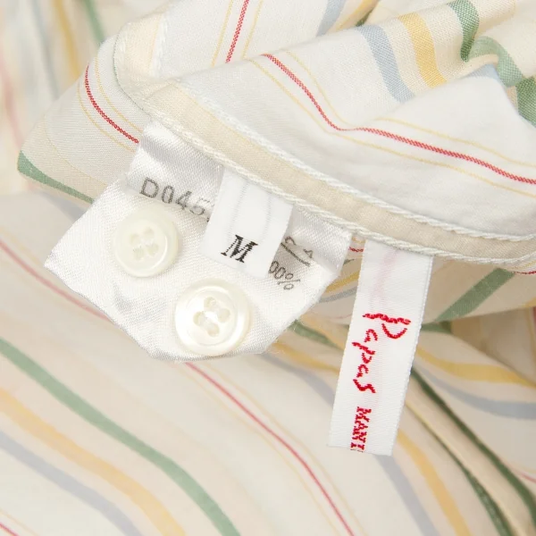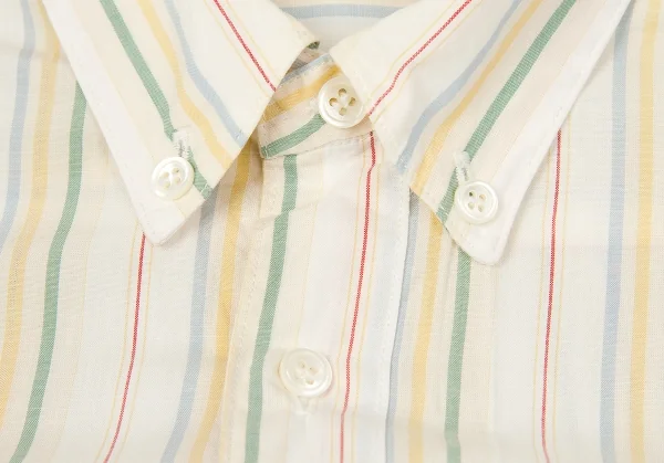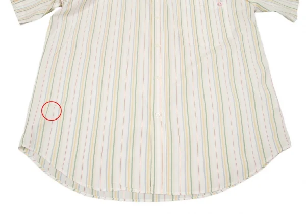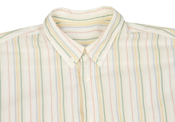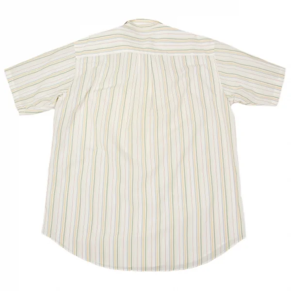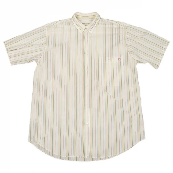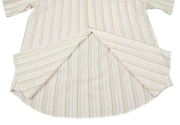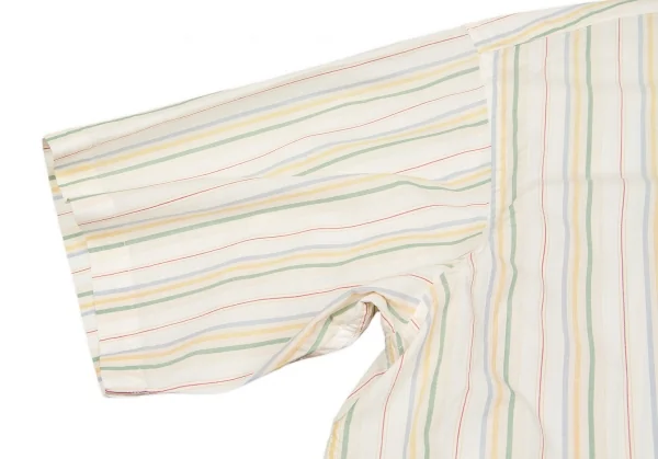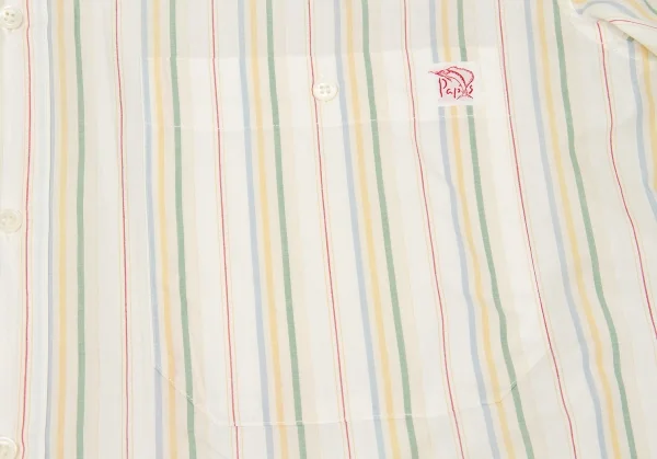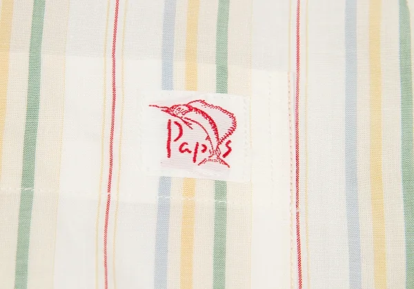 【SALE】パパスPapas マルチストライプ半袖コットンシャツ クリーム緑赤他M