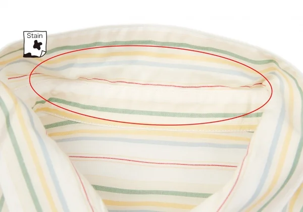 襟裏に黄ばみ、前後身頃にシミがあります(画像参照)。その他目立ったシミ、汚れ、ほつれ等なくいい状態です。クリーニング済み