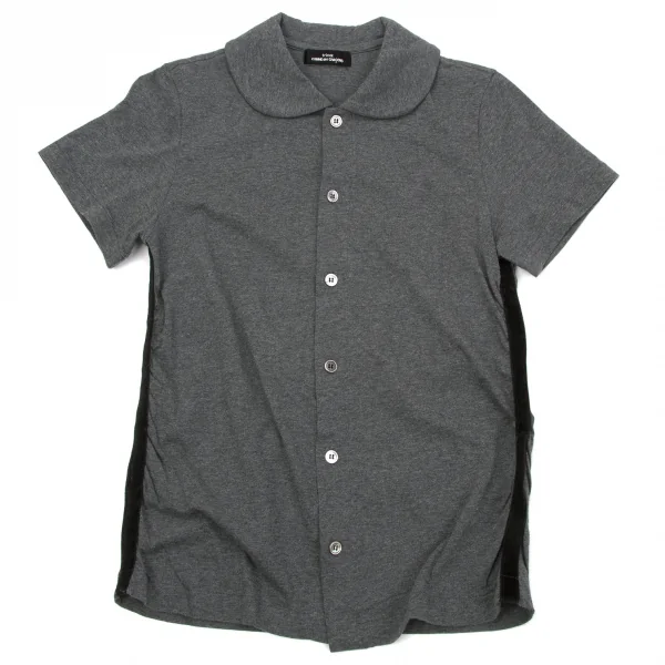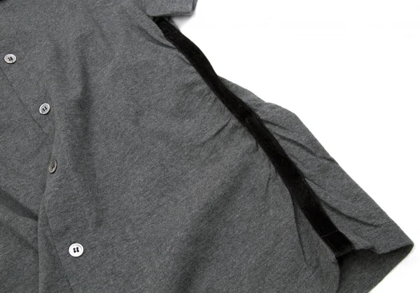 【最終値下げ】トリコ コムデギャルソンtricot COMME des GARCONS サイドベロアテープ丸襟天竺半袖シャツ チャコールS位