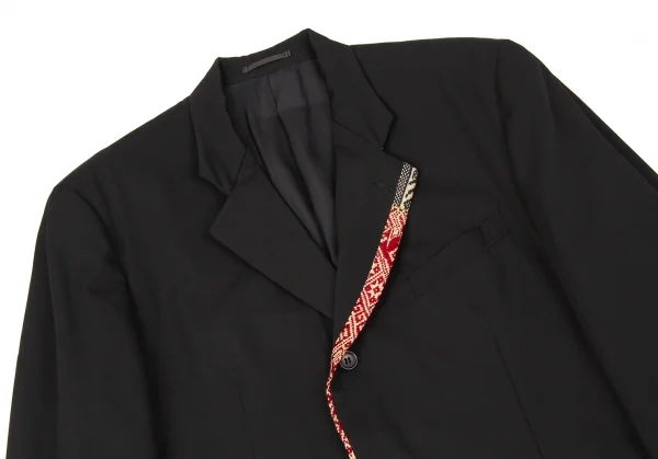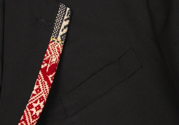 コムデギャルソンオムプリュスCOMME des GARCONS HOMME PLUS ウールギャバエスニックパイピングジャケット 黒エンジベージュ他M