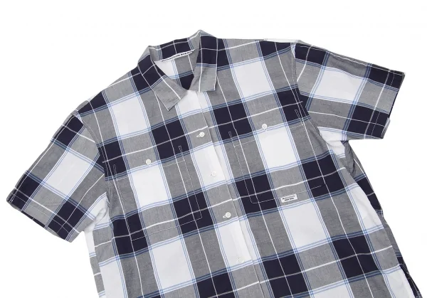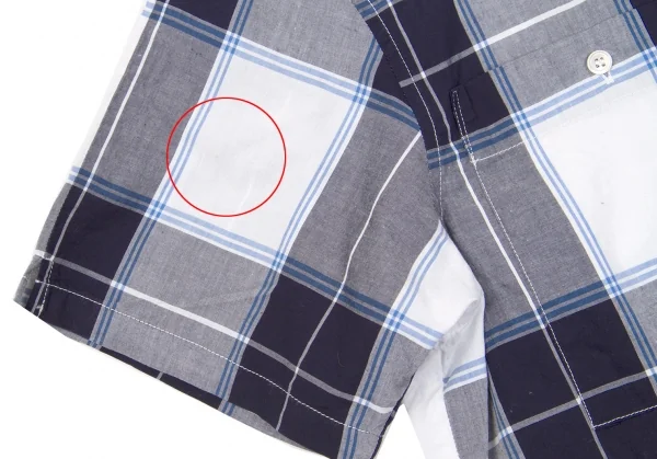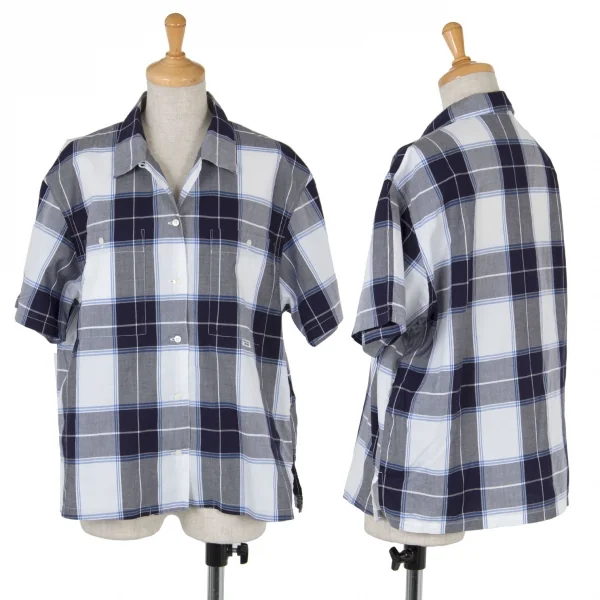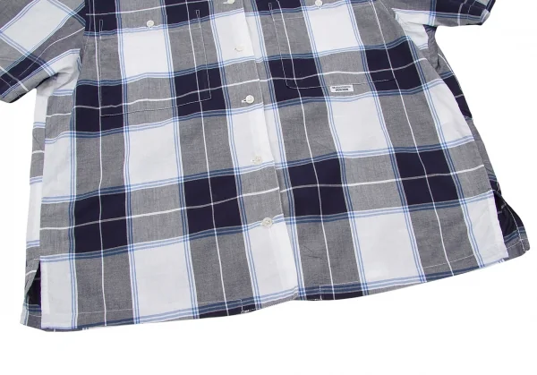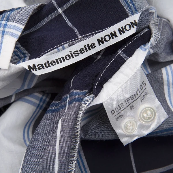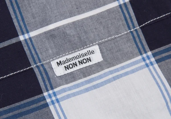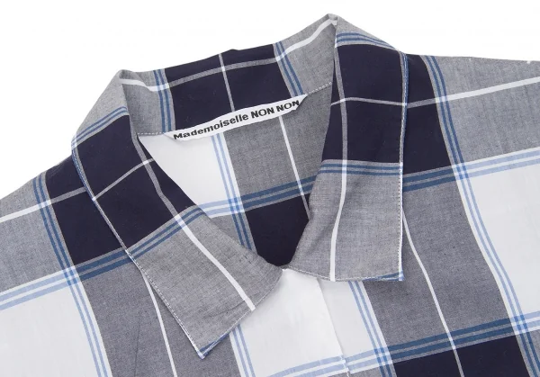 マドモアゼルノンノンMademoiselle NON NON コットンオープンカラーチェックシャツ 白紺青M位