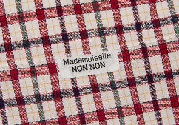 【SALE】マドモアゼルノンノンMademoiselle NON NON コットンオーバーチェック半袖シャツ 白紺エンジM位