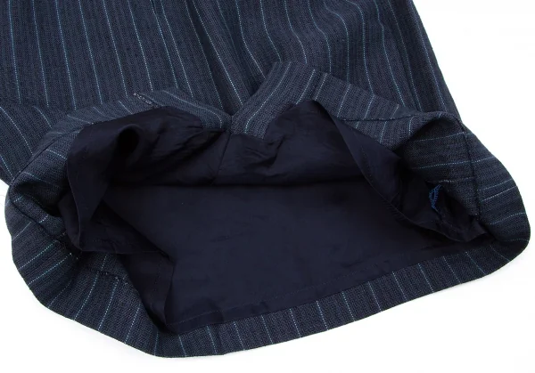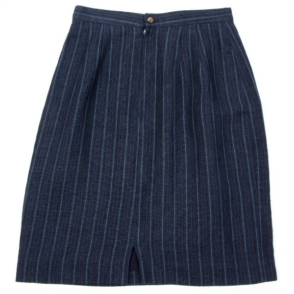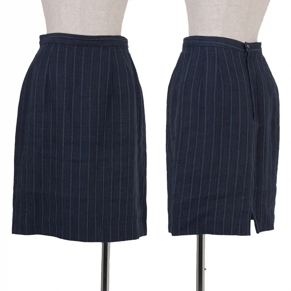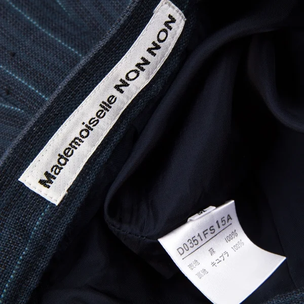 【SALE】マドモアゼルノンノンMademoiselle NON NON リネンストライプ台形スカート 紺M
