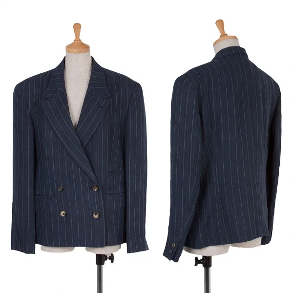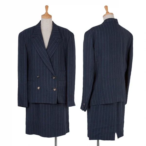 マドモアゼルノンノンMademoiselle NON NON リネンストライプセットアップスーツ 紺濃淡M位/M