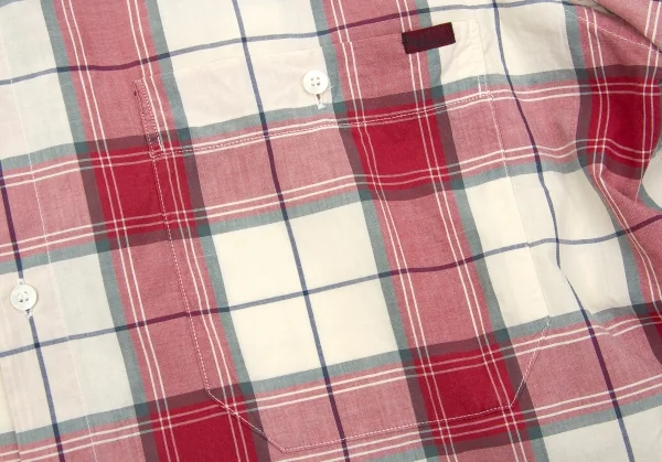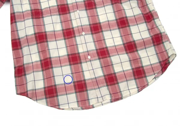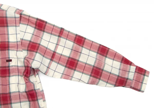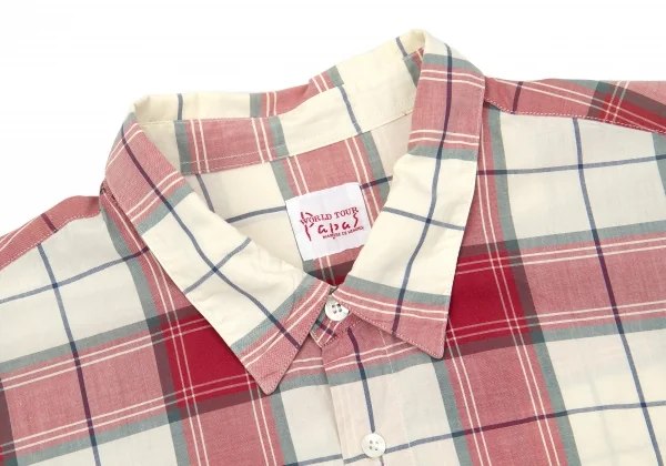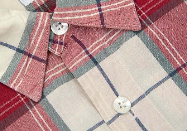 【最終値下げ】パパスPapas コットンチェックレイヤードスリーブシャツ ベージュワイン他L