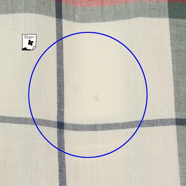 襟裏・右袖裏に汚れ、前後前身頃・後左袖にシミ、裾に小穴があります(画像参照)。クリーニング済み。