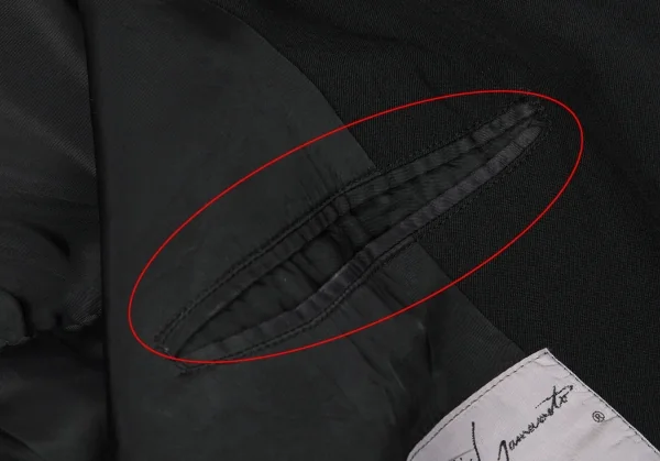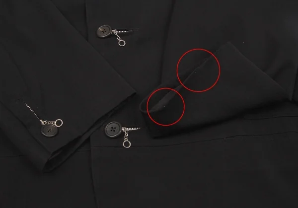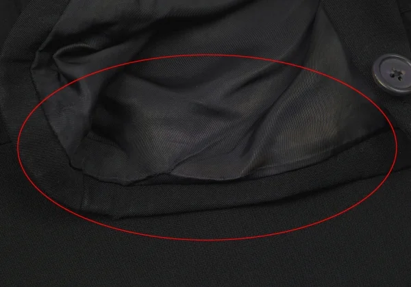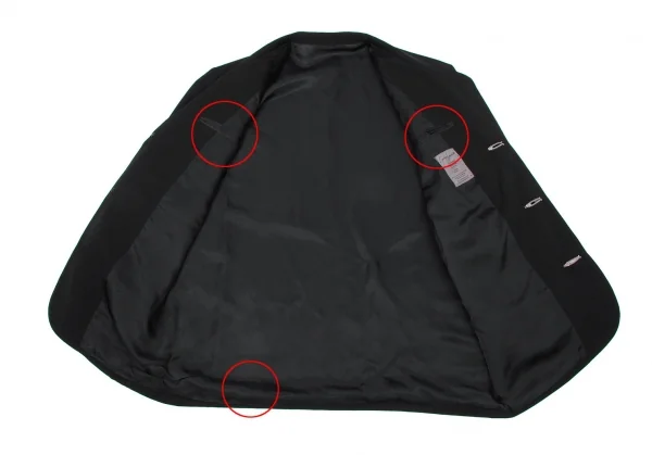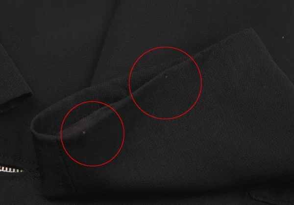 襟裏、袖裏、裏地ポケット口に汚れあり。袖先、裏地裾に小穴あり。(写真参照)クリーニング済み。