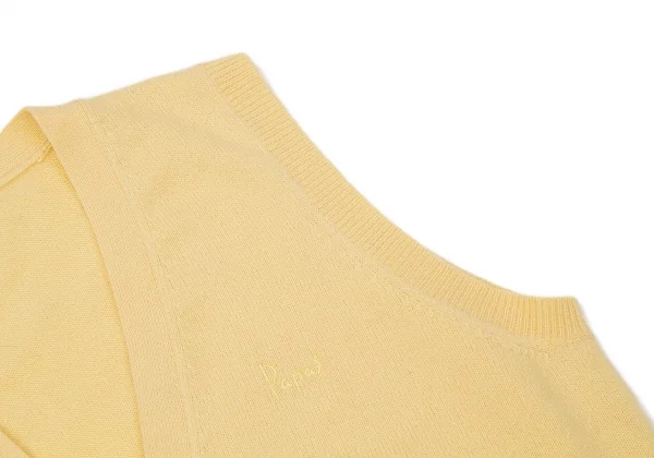 パパスPapas カシミヤ混ウールカーディガンベスト 黄色L