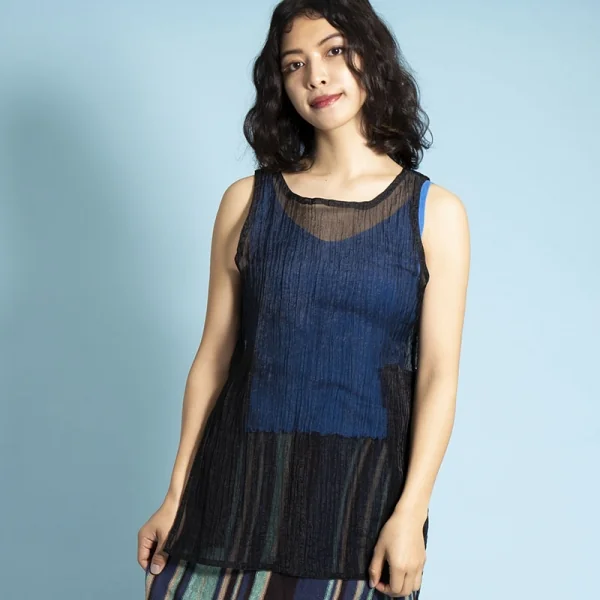 【SALE】イッセイミヤケI.S シワ加工シースルーノースリーブ 黒9