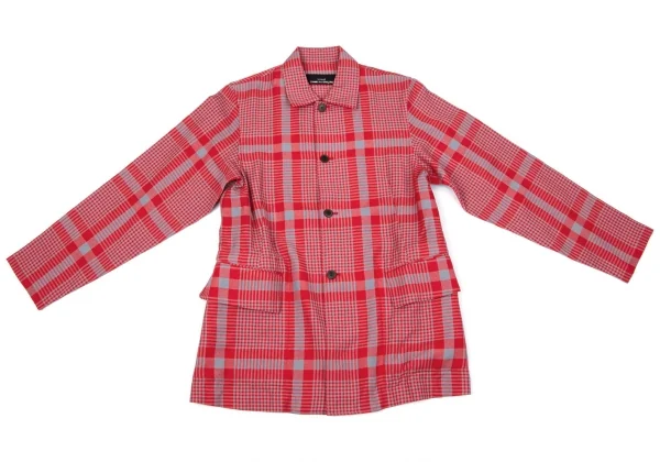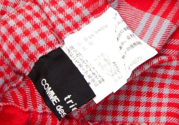 トリコ コムデギャルソンtricot COMME des GARCONS ウールオーバーチェックセットアップスーツ 赤グレーM位