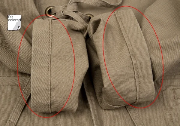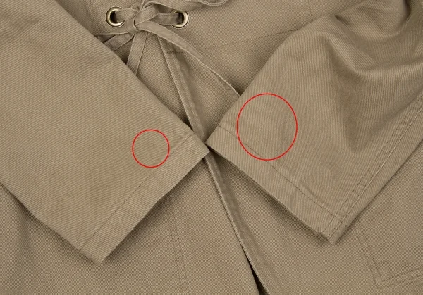 襟元・袖先にシミ、襟裏・袖裏にスレがあります(画像参照)。その他目立ったシミ、汚れ、ほつれ等なくいい状態です。クリーニング済み