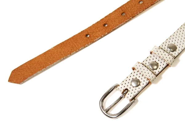 コムデギャルソンCOMME des GARCONS パンチングレザーナローベルト 生成り