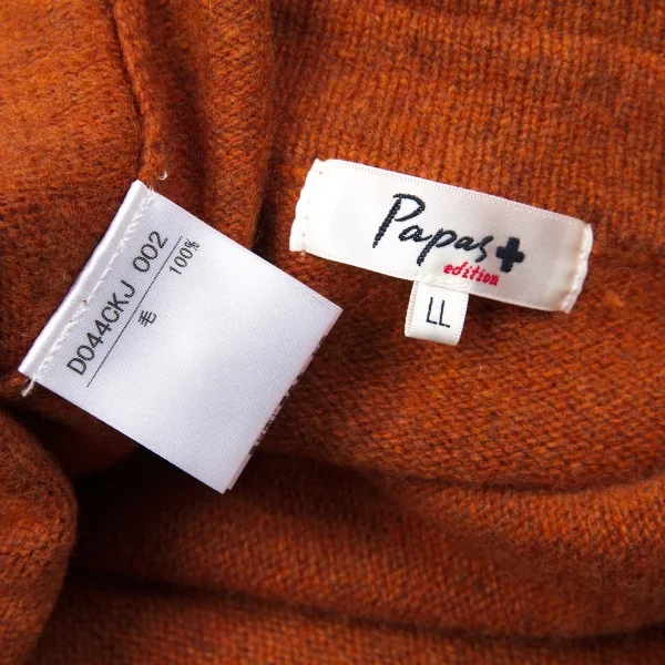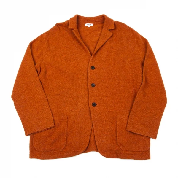 パパスプラスPapas+ ウールミックスカラーニットデザインジャケット オレンジ系LL